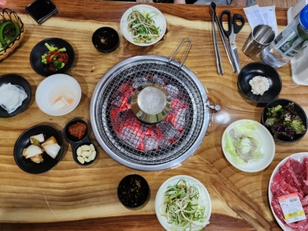 불판엔 한우고기를 구우며 드실 수 있구요..